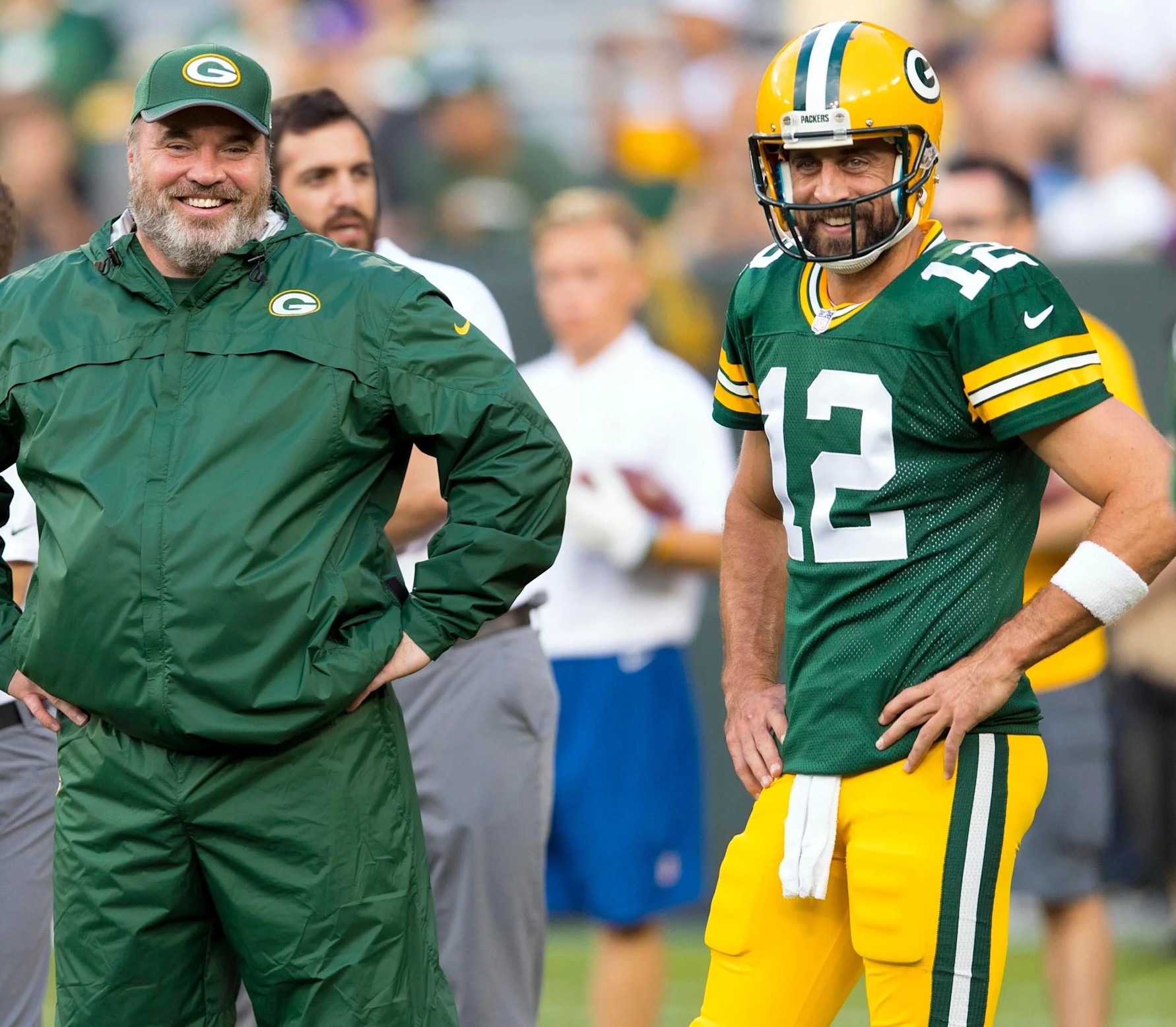 Mike McCarthy y Aaron Rodgers, cuando ambos formaban parte de los Empacadores de la bahía verde. Foto tomada del sitio de internet de los Green Bay Packers