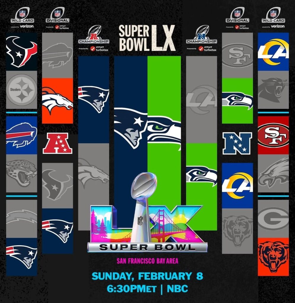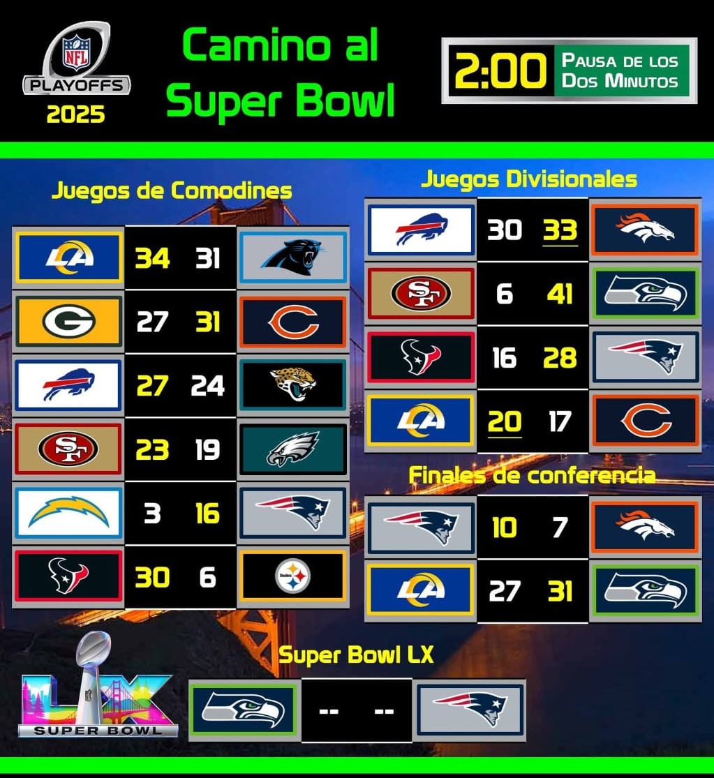 Previamente, Drake Maye corrió para 68 yardas, incluido un touchdown en carrera de 6 yardas faltando 2 minutos y 10 segundos del segundo cuarto, y completó 10 de 21 pases para 86 yardas llevando a los Patriotas de Nueva Inglaterra a conseguir su boleto para disputar el Super Bowl LX al vencer 10-7 a los anfitriones Broncos de Denver, en el duelo por el título de la Conferencia Americana.