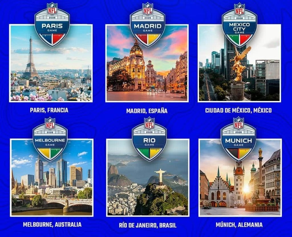 En 2026, la NFL tendrá 9 juegos internacionales (la mayor cantidad registrada); se disputarán en cuatro continentes, siete países y ocho estadios.