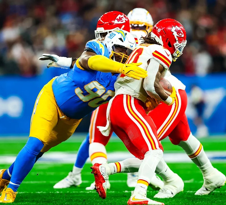 (viernes 5 de septiembre de 2025) Justin Herbert completó 25 de 34 pases para 318 yardas y tres pases de touchdown para que Cargadores de Los Ángeles vencieran 27-21 a Jefes de Kansas City ante 47 mil 627 aficionados en partido internacional de la NFL en Sao Paulo, Brasil.