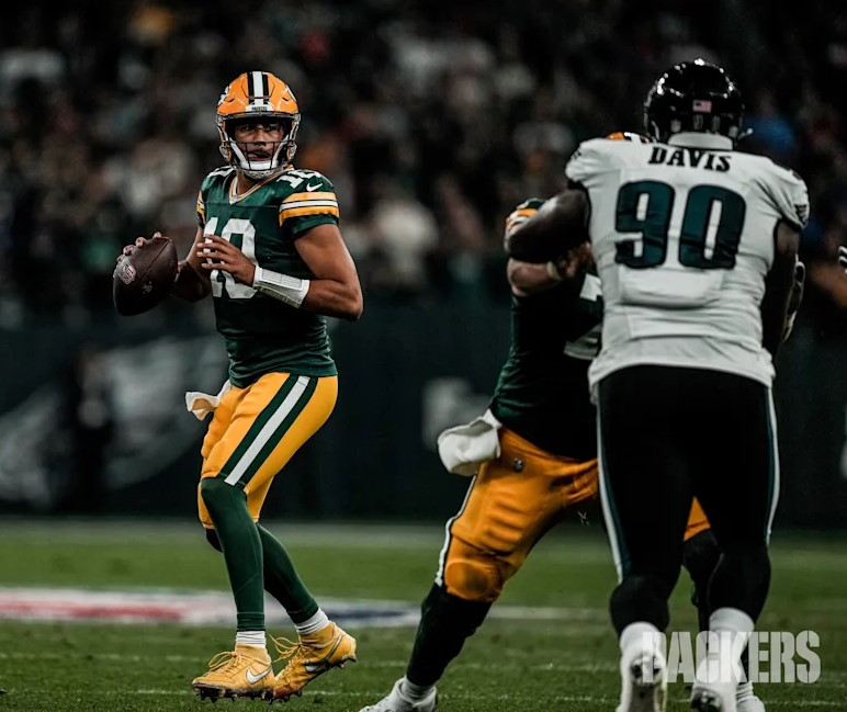 Josh Jacobs, corrió para 66 yardas y un touchdown en la victoria de Empacadores de Green Bay 27-13 sobre Leones de Detroit.Desde la Semana 11 de la temporada 2024, Josh Jacobs ha logrado un touchdown por carrera en 10 juegos consecutivos, incluyendo postemporada. Se convierte en el cuarto jugador desde 2000 en registrar ese desempeño uniéndose a LaDainian Tomlinson (12 juegos consecutivos en 2004), Jonathan Taylor (11 en 2021) y Priest Holmes (11 en 2002).