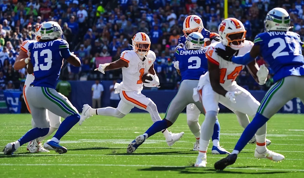 En su debut en la NFL, el receptor novato de Tampa Bay, Emeka Egbuka, registró cuatro recepciones para 67 yardas y dos touchdowns en la victoria de los Buccaneers 23-20 sobre Atlanta, incluyendo la recepción del touchdown ganador del juego de 25 yardas con 59 segundos restantes.